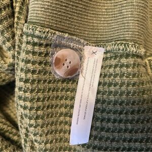 Free People oversized Olive Green Waffle Knit long sleeve blouse button top