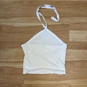 white, halter neck, sleeveless, cotton, fitted, casual, summer, minimalist, basic, trendy