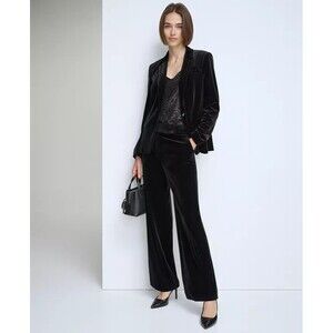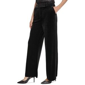 Calvin Klein Women's Trendy Velvet High-Rise Wide-Leg Pants Trouser Black 8