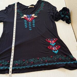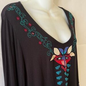 Caite Embroidered Tunic Mini Dress Size XL Black Bohemian Western Flare Sleeve