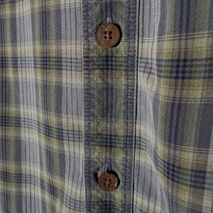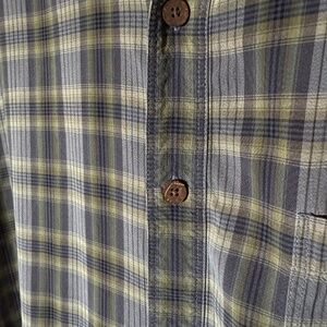 Tommy Bahama - 100% Silk Plaid Shirt - Lightweight M - Green/Grey - Wood Buttons