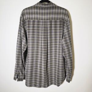 • Color/Pattern: Muted olive-gray plaid