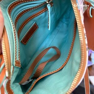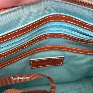 Dooney & Bourke Crossbody! The purse is in overall good condition. The outside of the purse is in very good condition. There are several marks on the interior of the bag. The last two photos show the marks and all the marks look similar. Because of the small size of the bag it was difficult to show each mark. I'm the original owner of this bag.