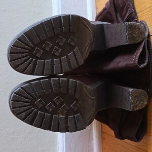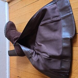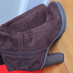 G by GUESS, Dark Brown Fabric Knee-High Boots, 4" Block Heel, Women's 7M