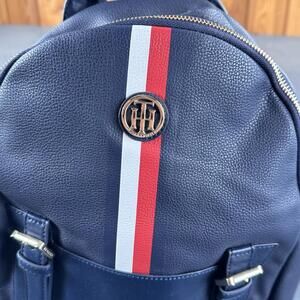 Tommy Hilfiger Leather Backpack Blue Striped Mini Day Bag 12x10x4 EUC