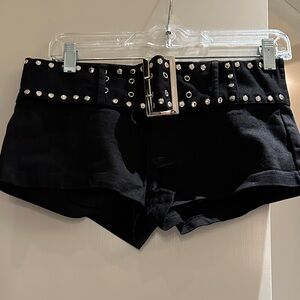 Chic dark brown cargo shorts with stylish pockets. Features a sleek design and button details.
