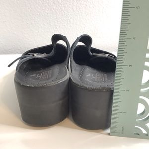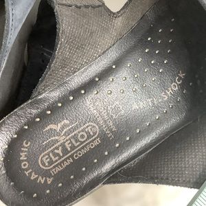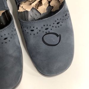 Fly Flot Blue Anatomic Italian Anti-Shock Mary Jane Mules Women 7.5-8/ EUR 38. Cut out design. Suede. Light mark on left shoe-see photo. Good, preowned condition.