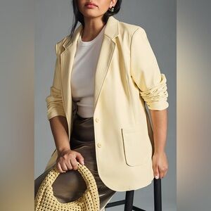 Elegant and sophisticated blouse by Hutch Anthropology. Tie front, button down, long sleeves with cuffs, satin buttons, lapel collar. Relaxed slimming fit.
