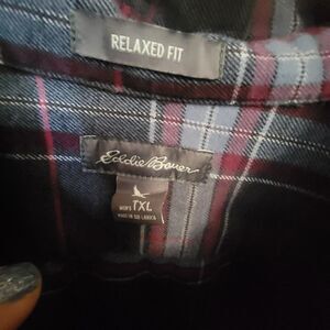 Eddie Bauer Shirt Mens XL Tall Gray Flannel Long Sleeve Plaid Hiking Outdoor