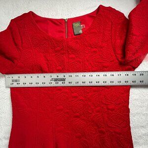 Taylor Women’s Red Embossed Floral A-Line Dress Size 12 Round Neck 3/4 Sleeve