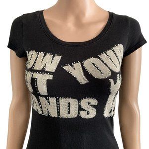 The Beatles Sweat Shirt Womens XS Black White Spell out Stretch