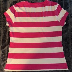 Tommy Hilfiger Women's Pink and White Striped Tee