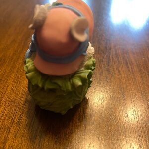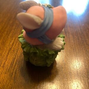 Charming bunny figurines wearing cute hats, perfect for Easter decor. Features delightful colors and intricate details. Collectors item. 2 inches tall