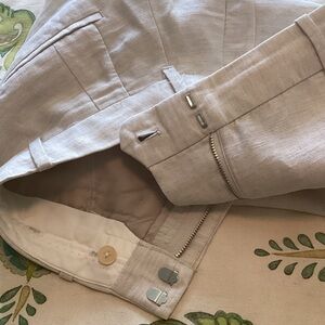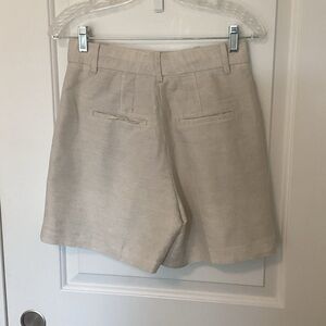 Elevate your casual wardrobe with these elegant tan Bermuda shorts. Perfect for a relaxed yet stylish look. This linen blend of shorts is an excellent used condition. Please see photos as part of the description. Measurements are approximate. Smoke and pet free home. There was no size in this. I’m guessing so please look at the measurements and decide for yourself.