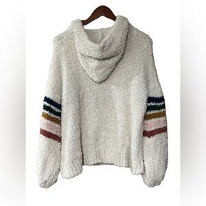 LOVE RICHE Varsity Striped Oversized Chunky Hooded Ballon Sleeve Cream Sweater