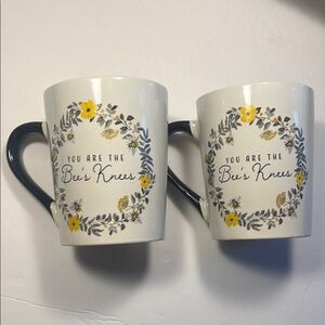🐝 Set of 2 Mugs cute message “You’re the Bees Knees” Yellow White Black 🐝