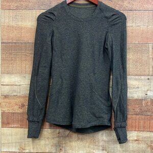 Lululemon Extra Mile Long Sleeve Shirt Cuffins Heathered Utilitarian Size 2