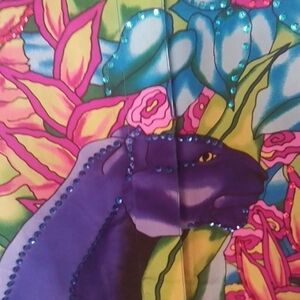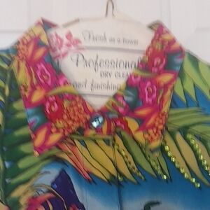 Bright blouse with a vibrant jungle print. Features bold colors and a playful design. Perfect for a standout look.