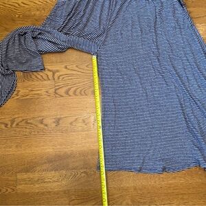 Chic wide leg pants with blue stripes. Perfect for a relaxed, stylish look.