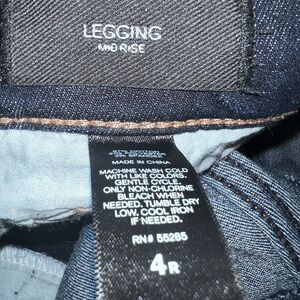 Sleek and modern design. Distressed detailing adds edge. Perfect for versatile styling. Stretch, Mid-rise Legging Jeans. Inseam Approximately 29”. Size 4R. Worn once or twice. As is.