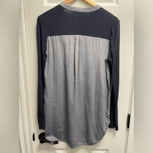 Vince Women’s Mixed Media Tuxedo Tunic Top Navy Blue Mandarin Collar Small