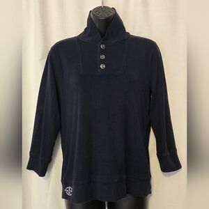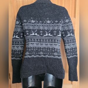 Stylish Ibex cardigan with a classic knit design. Features a button-up front. Perfect for cozy layering. Features high low design. 90% lambswool 10% cashmere . #231