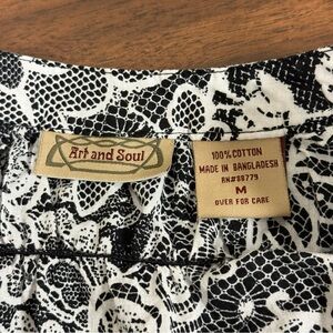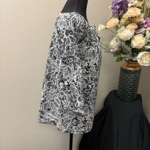 Art and Soul Black White Floral Lace Print Peasant Blouse Women’s M 3/4 Sleeve C