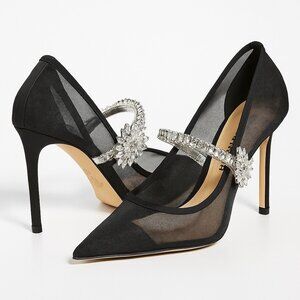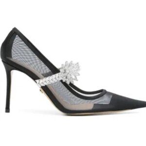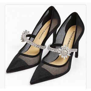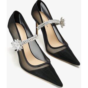 Mach & Mach Lotus Pumps Black Mesh Crystal Embellished Heels Size 39.5 US 9.5