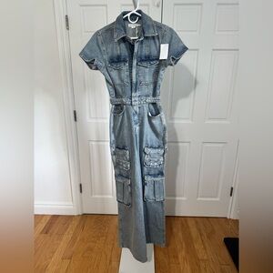 This is a $250 new with tag denim jumpsuit and the price reflects the issue noted above.