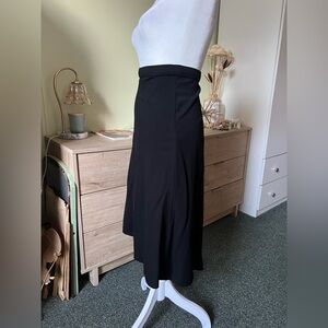 Black Modest High-Waist Stretch Basic Casual A-Line Knee-Length Midi Skirt sz XL