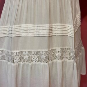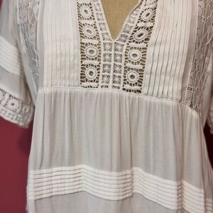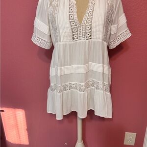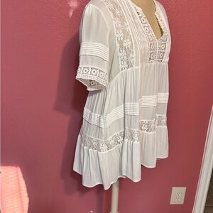 Elegant white top featuring intricate lace trim. Perfect for a chic and stylish look. Fairly used and in great condition! open to offers