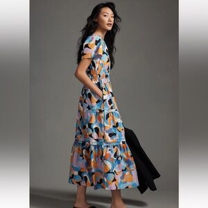 Anthropologie Somerset dress orange abstract print XLP, tiered maxi plus size Anthropologie dress, bold abstract motif maxi dress, universally flattering Anthropologie Somerset dress, boho chic Anthropologie vacation dress, statement orange print flowy maxi, Anthropologie plus size resort wear dress, casual yet elevated summer dress, everyday Anthropologie best-seller dress, feminine flattering Anthropologie XLP maxi dress, vibrant chic Anthropologie outfit