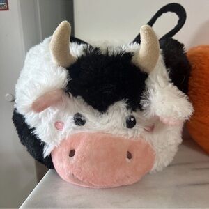 Adorable cow and pumpkin plush bags. Perfect for Halloween or fun outings. Soft and cute design.