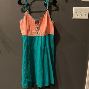Anthropologie Sparrow size large long beautiful sweater size large. Black and red and cream, faded blue look is how it’s made in lower half. Will come with a red belt. Spare button attached. No pilling, holes or flaws. Smoke free home.