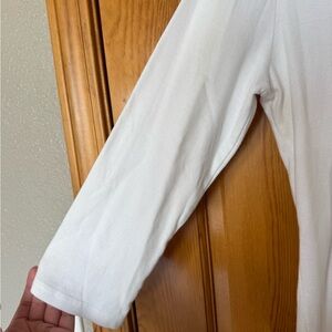 Classic white 3/4 length sleeve tee. V-neck design. Comfortable and stylish. No stains or rips. Size medium.
