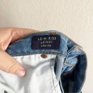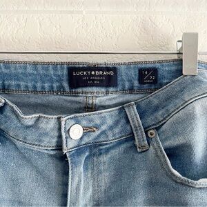 Jeans by Lucky Brand. Style is the Low Rise Lolita Skinny. Size 14. Light Blue Distressed Kendzora Wash.