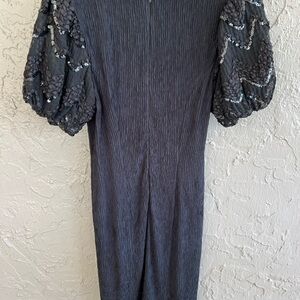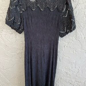 Leslie Fay Black Mini Dress with Sheer Sequin Sleeves