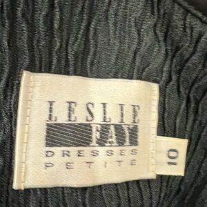 Chic mini dress by Leslie Fay. Features sheer sleeves adorned with sequins. Perfect for special events.