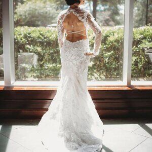 This was a sample dress from a Bridal boutique even though it's never been worn down the aisle, there might be small flaws that I'm unaware of due to being tried on.