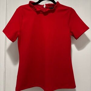 Elegant tan suede bomber jacket by Massimo Dutti. 100% Goatskin. Lining is 60 cotton/40 polyester. Features a buttoned collar and elastic cuffs for a tailored fit.