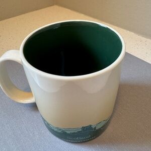 Starbucks Global Icons collection mug, Scotland. Graphics feature a bagpiper, a castle, and the sea. 16 ounces. Never used. Sorry, no box. Smoke free home.