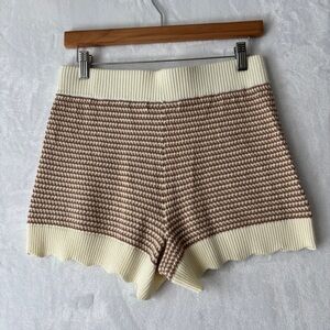 Rachel Parcell womens cream tan knit striped Scallop Pull On Short size medium