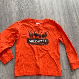 Rugged Carhartt overalls with woodland camo design. Ideal for play and exploration. Comfortable fit.