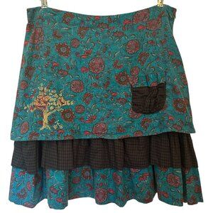 Ian Mosh [UK brand] layered flannel skirt, mixed-pattern lagenlook, sz 6
