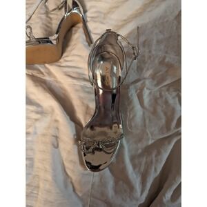 Aldo womens 8.5 stiletto heels metallic silver rhinestone sparkle bow shoes