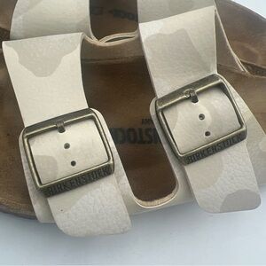 These Birkenstock Arizona sandals are a comfortable and stylish choice for women in size EU39 or US 8-8.5. The slip-on style with an adjustable strap closure ensures a perfect fit, while the low heel height and arch support provide all-day comfort. Made with high-quality synthetic upper material and a breathable fabric lining, these sandals are perfect for casual occasions all year round. The multicolor camouflage pattern and hipster, botanical theme make them a versatile option for any season. Designed in Germany by Birkenstock, these orthopedic sandals are a must-have for women looking for both style and function.