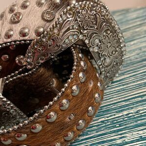 Nocona Women’s Leather/Calf Hair Rhinestone/Studs Western/Cowgirl Belt Size