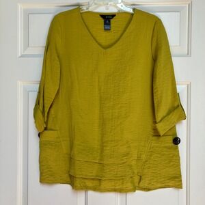 Chicos Women’s Cardigan Sweater Red Size 2 Large Heavy Large Buttons 3/4 Sleeve