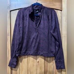 Pit to pit 20”; length 26”. Stylish off-white quarter-zip sweatshirt by Eddie Bauer. Ideal for casual outings, or hiking in the snow. Features subtle arm detail. Made of comfortable light fleece materials.