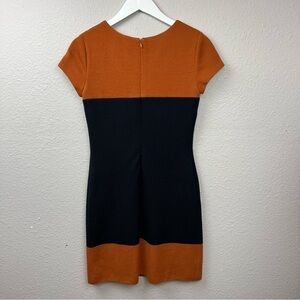 Luisa Spagnoli Woolmark 100% Virgin Wool Knit Sheath Dress in Black & Terracotta